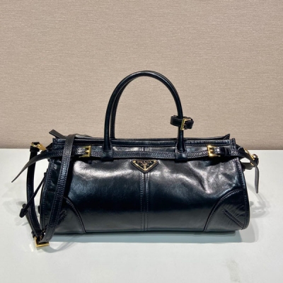 PRADA普拉達 LusSolf 手提款黑色油臘皮拎包 1B...