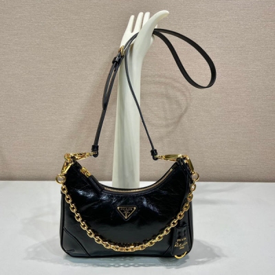 PRADA普拉達 百搭女用新款黑色腋下包 1BC214