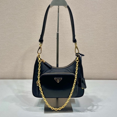 PRADA普拉達 簡約黑色新款腋下包 1BC198