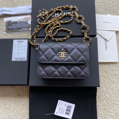 CHANEL香奈兒 黑色球紋金色五金鏈條零錢包 AP2306