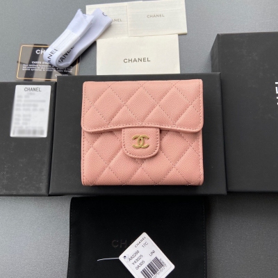 CHANEL香奈兒 進口細顆粒小牛皮粉色短錢包 A82288