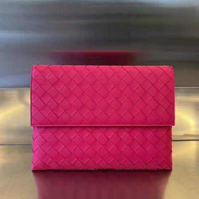BV寶緹嘉 新款編織紋格玫紅女士信封手包 26x19x1.5