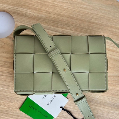 BV CASSETTE 金屬配飾款草綠原廠荔枝紋斜挎包 66...