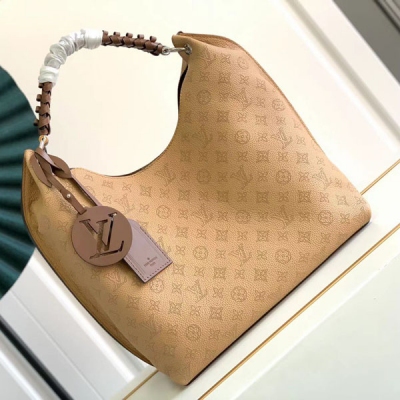 LV路易威登 SAC CARMEL 奶茶色真皮鏤空挎包 M5...