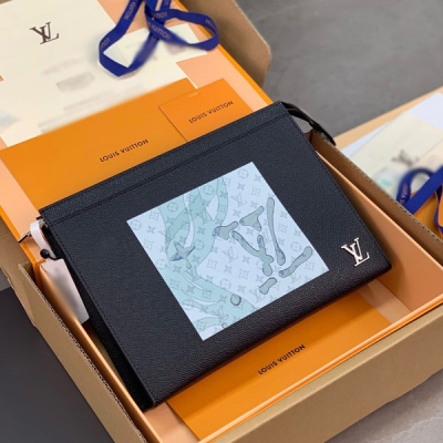 LV路易威登 POCHETTE VOYAGE 描繪圖案藍色手...