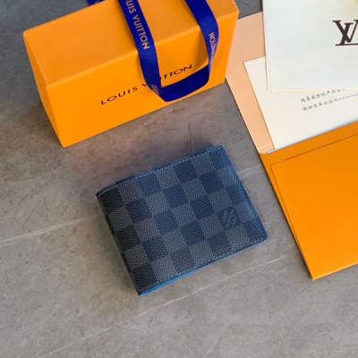 LV路易威登 MULTIPLE 黑格配藍色短夾 M64033