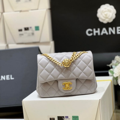 CHANEL香奈兒 貨源稀少 純原廠灰色小羊皮大mini山茶...
