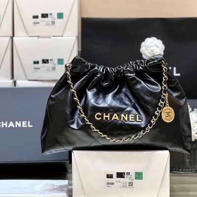 CHANEL香奈兒 明星喜愛 22橫版垃圾袋 黑色原廠小牛皮...