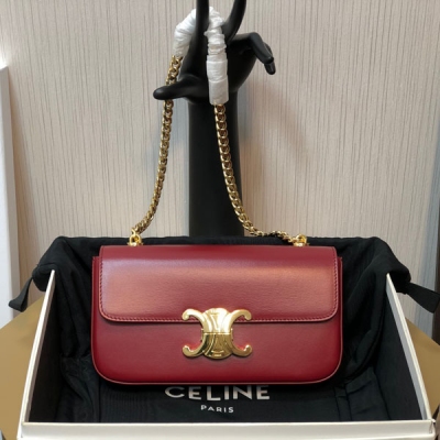 CELINE 2024新品 TRIOMPHE 復古酒紅小號牛...