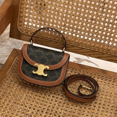 CELINE 凱旋門老花標誌迷你馬鞍手拎包 尺寸:15.5*...