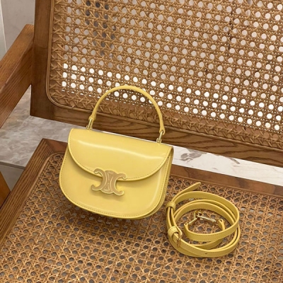 CELINE 凱旋門黃色真皮迷你馬鞍手拎包 尺寸:15.5*...