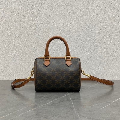 CELINE 棕色全皮波士頓枕頭包 尺寸: 19.5*14*...