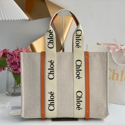 Chloe克洛伊 Woody 橙色帆布大號托特包 45*33...