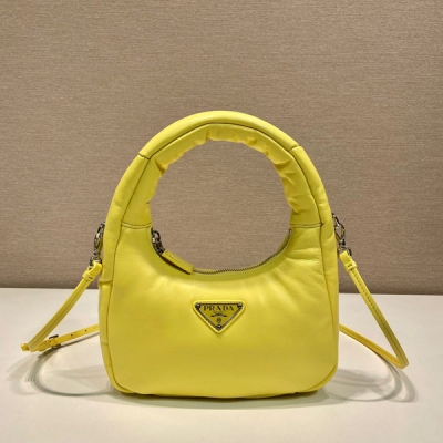 PRADA普拉達 小羊皮Hobo黃色迷你斜挎包 1BA384