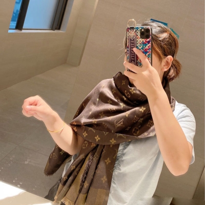 LV路易威登 品質絕了 常青樹款 老花真絲羊毛披肩 140*140cm