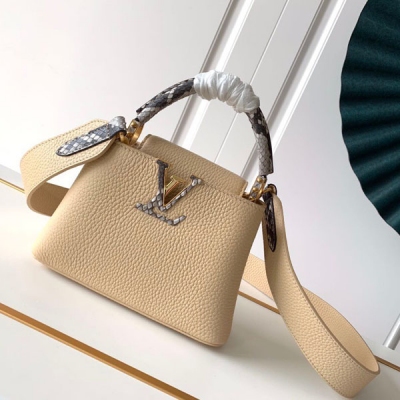 LOUIS VUITTON LV路易威登 M96467 M95509Capucines 迷你手袋 天空藍高貴的牛皮,奢華的胎牛皮襯裡,閃亮的金屬飾件,特有的Capucines搭蓋既可收入包內展示字母標識,又可外翻 呈現Monogram Flower圖案 蛇紋size:21x14x8cm