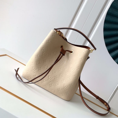 LV路易威登 NéoNoé 中號水桶包 M45307奶白 壓紋牛皮 抽繩設計