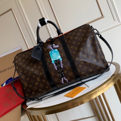 LV路易威登 春夏新款 KEEPALL 45 絲印玩偶公仔旅行袋 M89898 潮玩風格