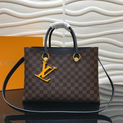 LV路易威登 格紋Riverside手袋 女士手提包 N40050 啡格配黑