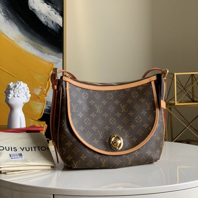 LOUIS VUITTON LV路易威登 M40075老花 Tulum 中古金豆手袋 袋身寬闊,質感柔軟,肩帶可隨意調節長度,老花蓋頭鎖扣弧形包女包手提包 金屬配件采圓弧形設計,既時尚又實用,尺寸:34x28x14cm