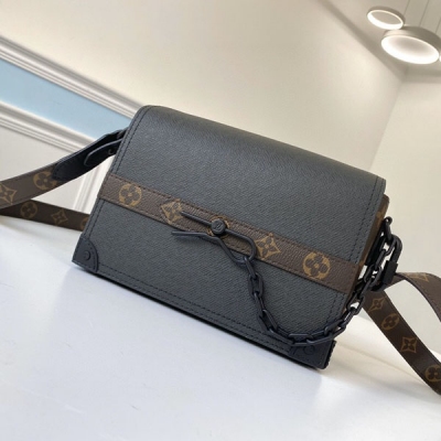 2020秋冬新款 LV路易威登 斜挎長方盒子包 M30717黑色 十字紋老花條紋