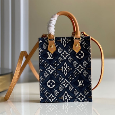 LV路易威登 Petit Sac Plat 手袋 斜挎包 M80288牛仔蓝
