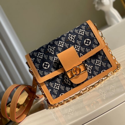 LOUIS VUITTON LV路易威登 免稅晶片版M57499藍色 1854藍色牛仔布M44391 Dauphine 中號手袋本款 Dauphine 中號手袋取材全新 Since 1854 提花織物,以梭織筆觸描繪 Monogram 花卉、LV 標識和代表品牌誕生之年的 1854 數字。內隔層和可拆卸肩帶方便日常背攜。尺寸:25.0 x 17.0 x 10.5 釐米
