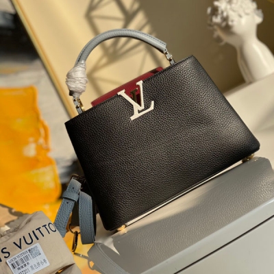 LOUIS VUITTON Capucines BB小號手袋 荔枝紋牛皮 淺藍拼紫紅 M57221黑色