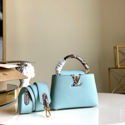 LV路易威登 mini Capucines手袋 蛇皮手柄 M98477天藍