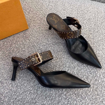 LV路易威登 2021經典老花拼接小牛皮高跟鞋 精緻高級