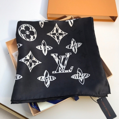 Louis Vuitton LV路易威登方巾 極致女人味 LV設計真的是非常走心真的很好看的設計 各個年齡段都很適合,非常襯氣色高出鏡率單品及其舒服的蛋白質纖維-重磅級真絲斜紋提花印花LV方巾柔軟光滑 輕盈細膩!涼爽舒適!適合整個四季可以搭配任何衣裝。氣場強大到不行出口義大利的訂單110x110cm