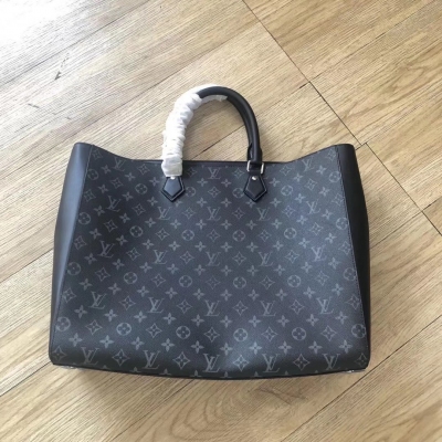 LOUIS VUITTON LV路易威登 M44733 源自 1960 年代的路易威登經典 Sac Plat 手袋激發靈感,以 Monogram Eclipse 帆布為 Grand Sac 手袋賦予新意。充裕容量可收納辦公所需或短途旅行用品,內附可拆卸拉鍊內袋。尺寸:42×34×14cm