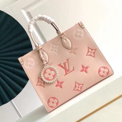 LV路易威登 OnTheGo中號 全皮壓紋托特包 M45717漸變粉