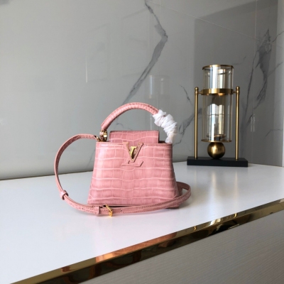LOUIS VUITTON LV路易威登 迷你N95003粉色進口頭層鱷魚紋 ,盡顯女裝藝術總監Nicolas Ghesquière設計的New Classic系列的特色元素,如裹有皮革標識,珠寶般的邊環,迷你那英全皮鱷魚紋女包 以及可收入包內的翻蓋 搭配新款銀金色金屬飾件,頂部手柄和可拆卸皮革肩帶提供多樣的背攜方式尺寸:21*18*9cm