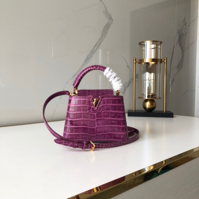 LOUIS VUITTON LV路易威登 N94897迷你 紫色 進口義大利 頭層鱷魚紋 盡顯女裝藝術總監Nicolas Ghesquière設計的New Classic系列的特色元素如裹有皮革標識珠寶般的邊環以及可收入包內的翻蓋 搭配新款銀金色金屬飾件頂部手柄和可拆卸皮革肩帶提供多樣的背攜方式 尺寸 21*14*8cm