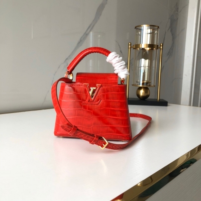 LOUIS VUITTON LV路易威登 N93992迷你紅色 進口義大利 頭層鱷魚紋 盡顯女裝藝術總監Nicolas Ghesquière設計的New Classic系列的特色元素如裹有皮革標識珠寶般的邊環以及可收入包內的翻蓋 搭配新款銀金色金屬飾件頂部手柄和可拆卸皮革肩帶提供多樣的背攜方式 尺寸 21*14*8cm