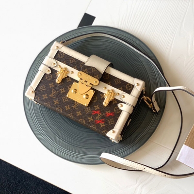 LOUIS VUITTON LV 路易威登 頂級全鋼版本 M45292米白小花。PETITE MALLE BOX 盒子斜挎包 此款秋冬季新款Petite Malle手袋,致敬路易威登制箱傳統。size:20*5*12.5cm