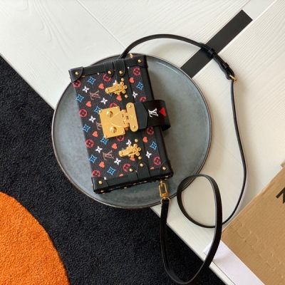 LOUIS VUITTON LV 路易威登 頂級全鋼版本 M55436純鋼荔枝紋小花。PETITE MALLE BOX 盒子斜挎包 此款秋冬季新款Petite Malle手袋,致敬路易威登制箱傳統。size:20*5*12.5cm
