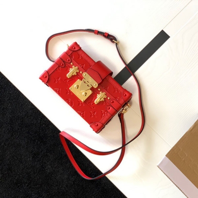 LOUIS VUITTON LV 路易威登 頂級全鋼版本 M40273紅色壓花。PETITE MALLE BOX 盒子斜挎包 此款2018秋冬季新款Petite Malle手袋,致敬路易威登制箱傳統。size:20*5*12.5cm