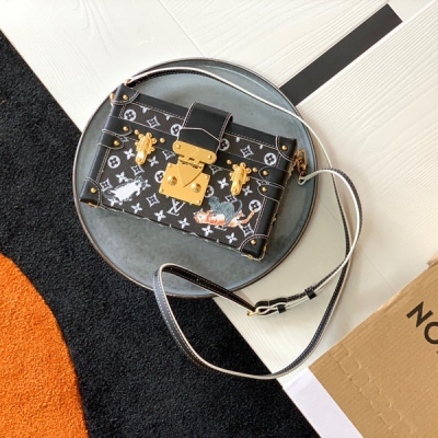 LOUIS VUITTON LV 路易威登 頂級全鋼版本 M44437純鋼黑貓。PETITE MALLE BOX 盒子斜挎包 此款秋冬季新款Petite Malle手袋,致敬路易威登制箱傳統。size:20*5*12.5cm