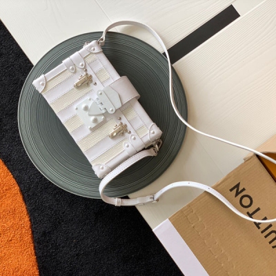 LOUIS VUITTON 頂級全鋼版本 M44199白皮水波紋 PETITE MALLE BOX 盒子斜挎包