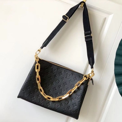 LOUIS VUITTON LV 路易威登 路易威登 M57783 M57782 Coussin 中號手袋于 2021 春夏時裝秀俘獲視線。Monogram 壓紋蓬鬆綿羊皮塑造宛如靠枕的豐軟質感,可調節肩帶和全新 Edge 鏈條實現肩背和斜挎選擇,亦可化身腋下法棍包。尺寸:34 x 24 x 12 釐米