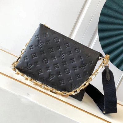LOUIS VUITTON LV 路易威登 路易威登 M57790 M57793 Coussin 小號手袋于 2021 春夏時裝秀大放異彩。Monogram 壓紋蓬鬆綿羊皮打造靠枕構型,為簡約設計注入前衛風範。可利用肩帶斜挎或化身鏈條法棍包,亦可於腋下攜帶。尺寸:26 x 20 x 12 cm