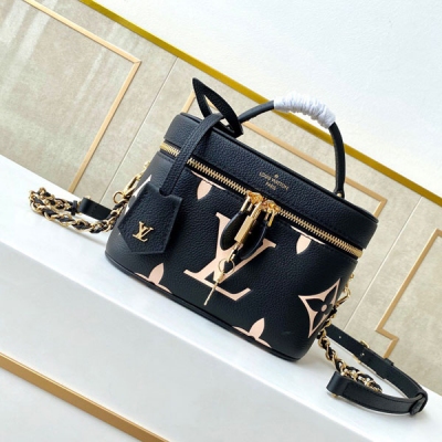 頂級原單M45599 M45780 Vanity小號手袋向Monogram Nice Vanity化妝包採擷靈感,以壓印Giant Monogram圖案的Monogram Empreinte皮革塑造別致構型。 皮革抽穗拉鍊頭、優雅手柄和可拆卸肩帶融入矚目氣息和實用功能。 尺寸:19 x 13 x 11cm(長x高x寬)