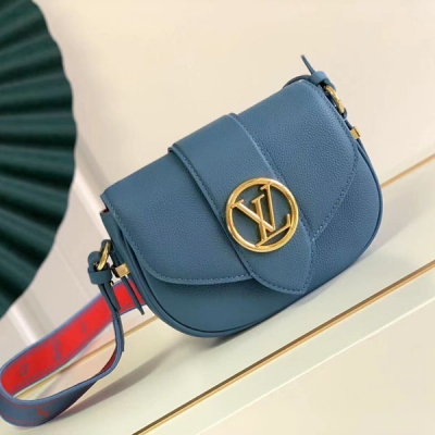 LV Pont 9 Soft 荔枝紋 M58727藍色 斜挎包