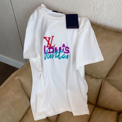 LV2022春夏最新款 T恤短袖 男女同款 定染螺紋 黑白兩色