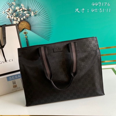 GUCCI古馳 男士新款黑色暗花帆布手提包 449176