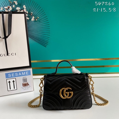 GUCCI古馳 配全套專櫃包裝 新款。市場頂級獨家控貨,專櫃品質 採用進口牛皮,原廠五金!精緻做工。獨家實物拍照品質如圖可見。款號:547260。尺寸:寬21*高15.5*側寬8。顏色:黑色全皮