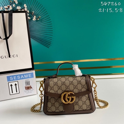 GUCCI古馳 配全套專櫃包裝 新款。市場頂級獨家控貨,專櫃品質 採用進口牛皮,原廠五金!精緻做工。獨家實物拍照品質如圖可見。款號:547260。尺寸:寬21*高15.5*側寬8。顏色:PVC/啡色