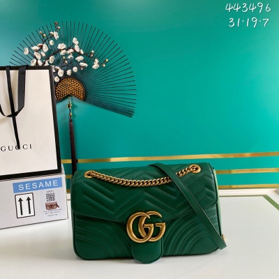 GUCCI古馳 配全套專櫃包裝 新款。市場頂級獨家控貨,專櫃品質 採用進口牛皮,原廠五金!精緻做工。獨家實物拍照品質如圖可見。款號:443496。尺寸:寬31*高19*側寬7。顏色:深綠色